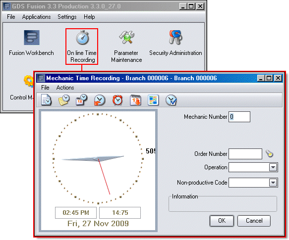 La Grabación On line requiere la grabación de la actividad ( productiva/no productiva ) del Mecánico y su hora de inicio.