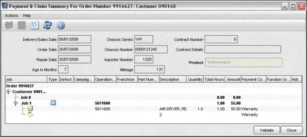 El resto de los campos de la pantalla de detalle de la Garantía estan activos. Los datos grabados se salvarán, pero no se enviarán en la rutina de envío. Todos los mensajes,chequeos se supervisan por una rutina de validación. La ventana de validación de los mensajes de las Garantías abrirá todos los errores conocidos y el Usuario añadirá cualquier detalle perdido antes de que la Factura sea impresa. Cuando la rutina de validación de la Garantía ha sido validada, se puede generar la Factura. La rutina de validación asigna el número de Garantía inmediatamente y calcula si dicho número está dentro del rango correcto.